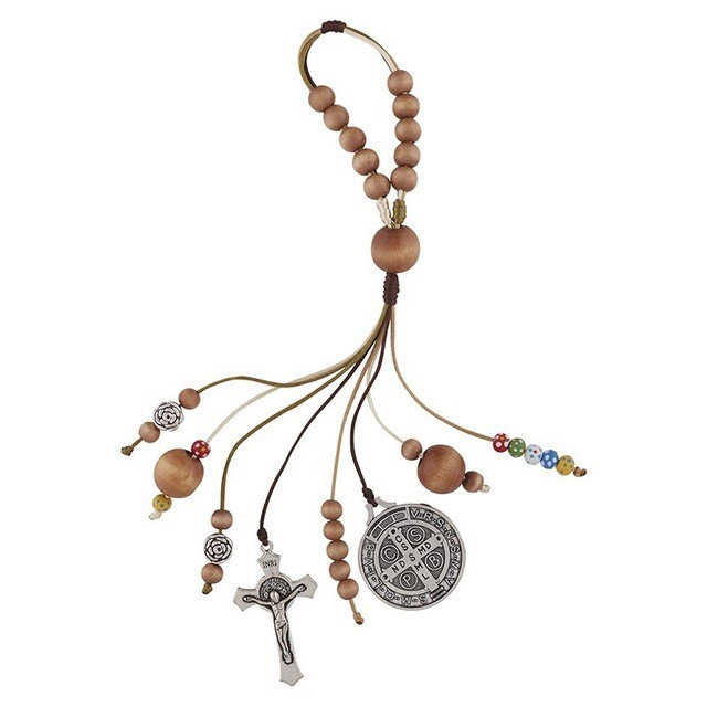 Available: In stock. Protection Hanger - Invoke the blessing and protection of St. Benedict in your home with this St. Benedict colourful Home Protection Hanger. The perfect size and loop at the top of the cord makes it great to hang on a door knob, wall or bed post. Material: Zinc Alloy/Wood/Cord Size:10" L
