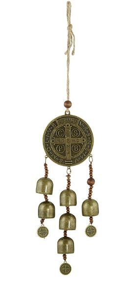 Available: By Special Order. Door Protection Hanger - Ward off evil and gain an added sense of peace at your home with this beautifully designed St. Benedict Door Hanger with Bells. This will make a wonderful gift for anyone with a special devotion to St. Benedict. Material: Zinc Alloy/Wood/Cord Size: 12" L