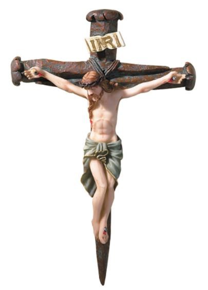 Availability : In Stock Crucifix - Nail Design Wall - This uniquely designed crucifix reminds us that Jesus Christ died for our salvation. Material: Resin Size: 8" H