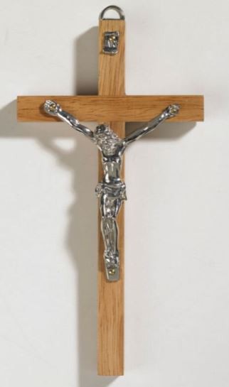 Available: In stock. Crucifix - Wall - This crucifix is perfectly sized to hang in the home, parish or classroom. They also make great gifts for any occasion. Material: Wood/Zinc Alloy Size: 6-3/4" H