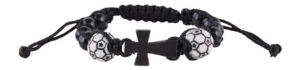 Available: In Stock Bracelet - Rosary Sport (F/Ball) - This bracelet is made of football beads, wood beads, a small wood crucifix and is strung on an adjustable cord to fit a variety of wrist sizes. Material: Moulded/Wood/Cord Size: 7-1/2" Adjustable