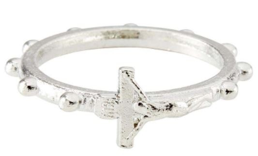 Available: In Stock Rosary Ring - Silver Plated Crucifix - This rosary ring features a crucifix center in a silver plated finish. Material: Silver Plate Size: 1" D