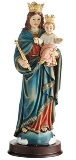 Availability: In Stock Statue - Mary Help Of Christians (8 1/2") - This Marian statue is highly detailed, hand painted and comes on a wood base. The devotion to Mary, Help of Christians is celebrated on May 24. Material: Resin/Wood Size: 8 1/2" H