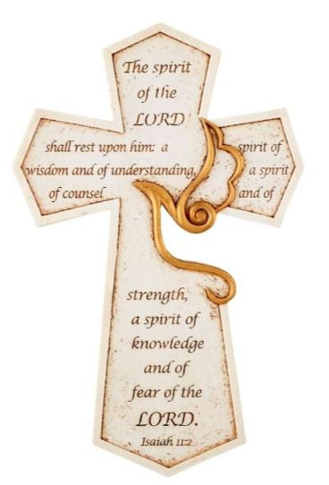 Availability: By Special Order Cross - Confirmation Holy Spirit - This cross is decorated with a cut out Holy Spirit image and the bible verse Isaiah 11:2. It makes a wonderful gift for any Confirmation candidate. Material: Resin Size: 8 1/2" H