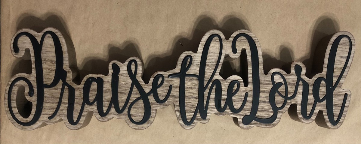 Available: In stock Table Decor - Praise the Lord Material: Wood Size: 4 1/2 H - 15 1/2 L