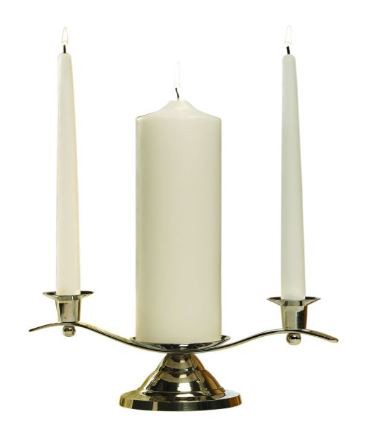 Availability: By Special Order Silver Unity Candleholder - It is styled with a silver finish designed to complement any unity candle set and will accommodate all traditionally sized 3" diameter pillar candles and 7/8" diameter side candles. Candles not included. Material: Nickel Plated Size: 12" L