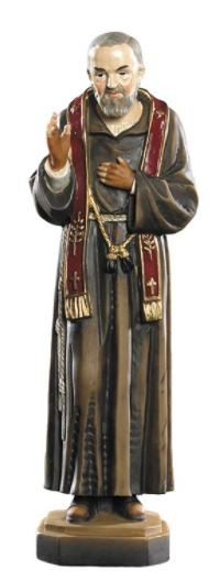 Available: By Special Order Statue - St Pio - Padre Pio or St. Pio Pietrelcina was a man who bore numerous sufferings and trials throughout his life with great patience, seeing in them a way to conform himself more with our crucified Lord. He is known to help person get closer to God through the sacrament of reconciliation. We celebrate the feast of St. Pio on September 23. Material: Resin Size: 8" H